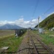 蒲須坂駅に着く頃、雲の先にオレンジを帯びた白き連山が現れた。