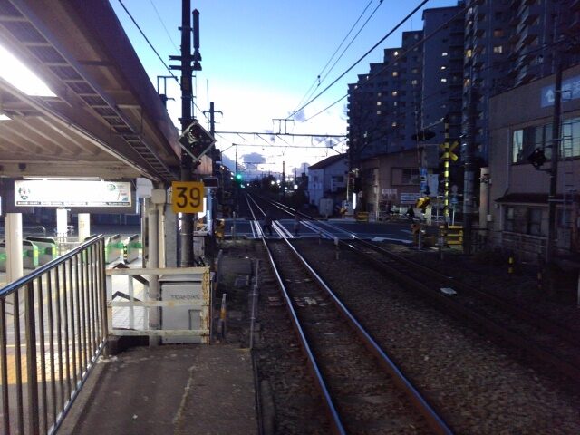 しばらく同じ姿を保っているであろう小さな駅。駅を出るとすぐに踏切がある。矢向、平間もそうだった。