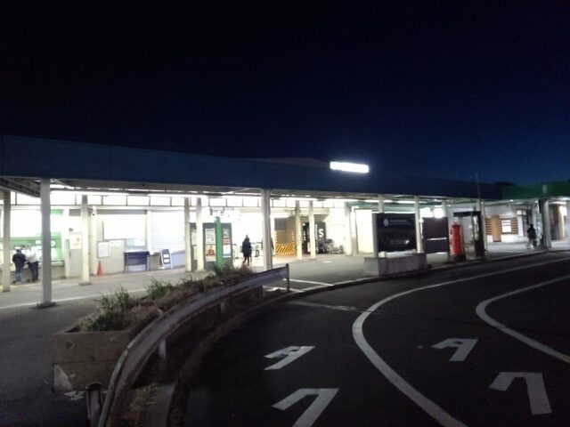 駅前は空地で、駅が闇に浮かぶかのよう。