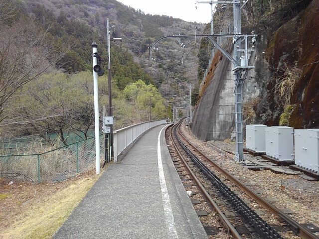 駅到着前に廃屋を見る。暮らすには険しい立地だったが、確かに生活の跡があった。大井川鐡道がまだ国鉄で、すべての駅に駅員がいた頃の遺構なのだろう。