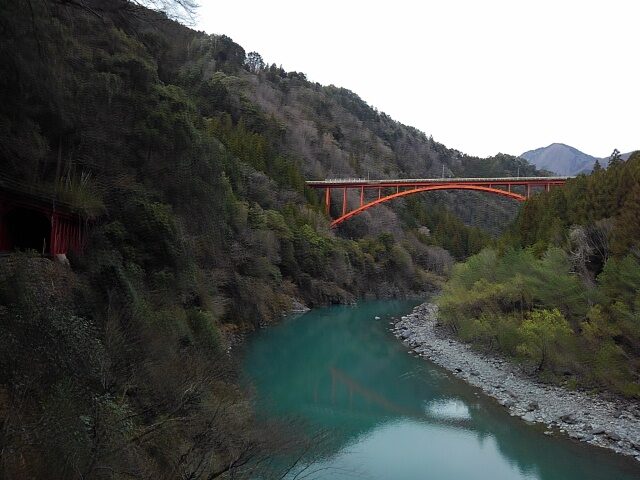 蛇行する大井川に沿い、大井川鐡道もまた蛇身のようにくねる。