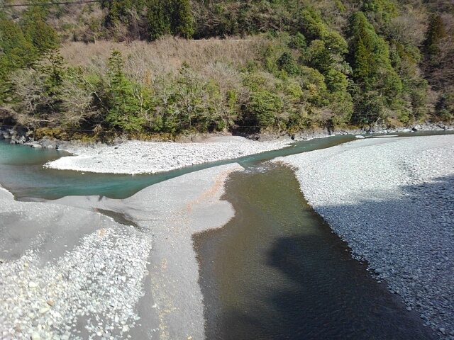 荒涼としてグレーの河川敷。緑はない。間近まで冬だったからというわけでもない。流れが早く草は育たないのか。川の景色にもいろいろある。