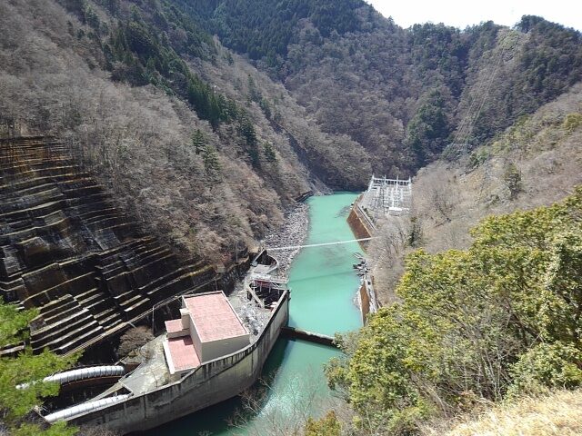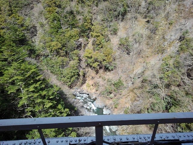 閑蔵に至る途中に鉄道橋の中では日本一の高さを誇る関の沢橋梁を通る。高さは70.8メートル。確かに群を抜く高さ。遥か下を大井川は流れていた。