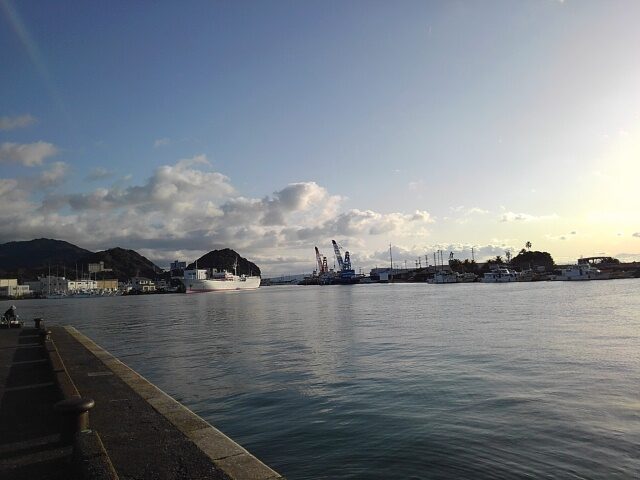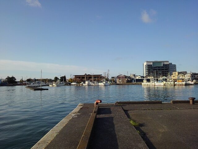 朝食前に小石川に沿って焼津港に出る。日差しはあたたかく、あたりは静か。