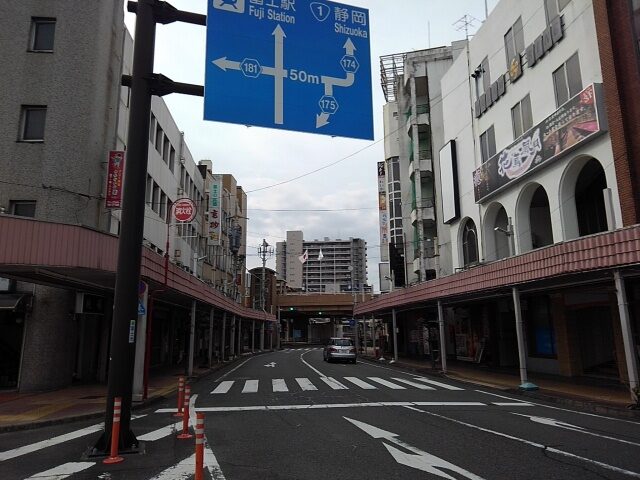 本町通りの先には富士山がある。残念ながら今日は見えない。裾野が壁のように立ちはだかっている。