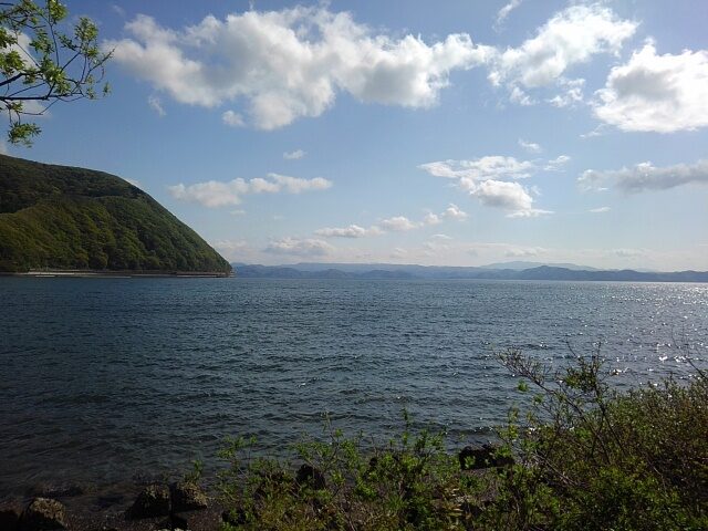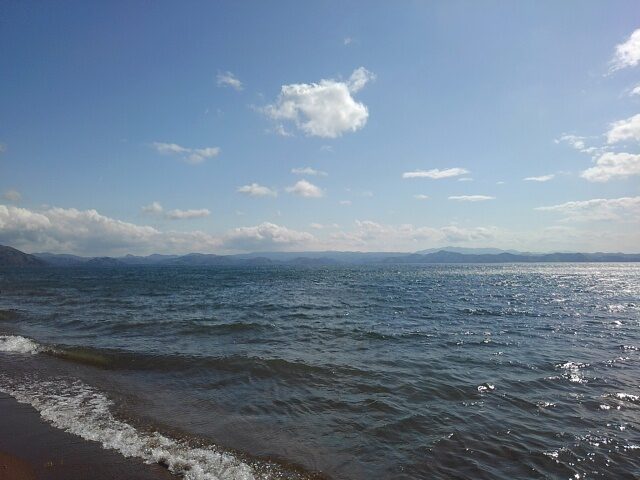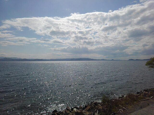 猪苗代湖は輝いていた。でも車窓からは満足に見えない。だから湖畔へ向けて歩いていく。それが今日の目的。