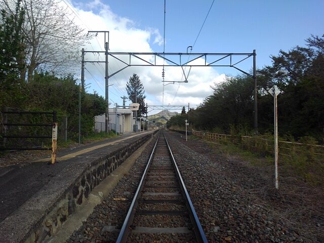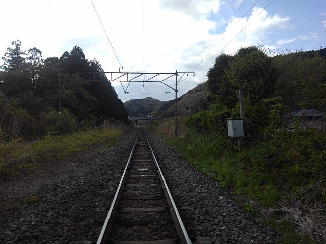 この列車はやけに汽笛を鳴らす。中山宿駅を出てしばらくすると右手にスイッチバックを行っていた旧中山宿駅を通りすぎる。