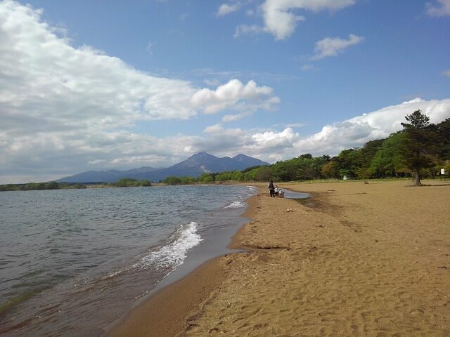 波打ち際で風に当たる。湖畔の先には磐梯山。みんな波に夢中。木陰で昼寝する自転車カップル。砂浜に座りこんでいた女性が立ち上がり、水辺にと歩いていく。その後ろ姿には決意が見られた。