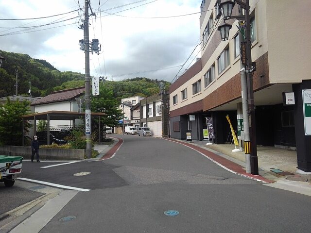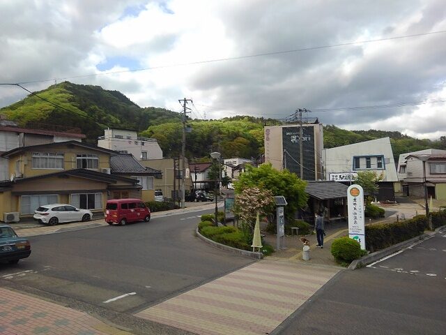 駅前の足湯場にまだ湯は流れておらず、残念なことに湯けむりの道には多くの廃墟が見られる。