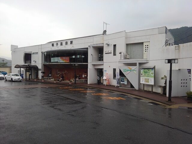 国道に面した「道の駅」の正面に池月駅はある。