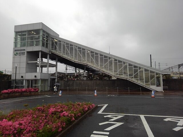 雨は激しく、寒々としている。時に東北本線や貨物列車が高台を往く姿を見る。