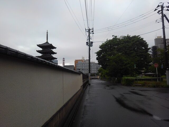 雨は上がった。孝勝寺五重塔が見える。「寄るか」と角を曲がったが、山門は近くになく、空しく通りすぎた。