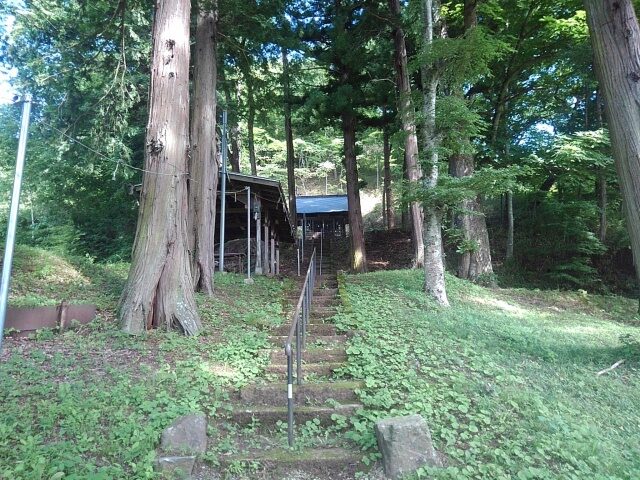 諏訪神社も墓地も夏草に覆われ、蝉の声しか聞こえてこない。涼しい風が時折吹き抜ける。