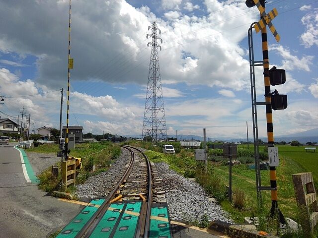ほぼ線路に沿った畝道がある。やがて農作業車とすれ違う。よかった。この道は通じている。