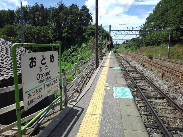 平原駅からは約20分。何の表示もない階段の下に乙女駅のホームはあった。
