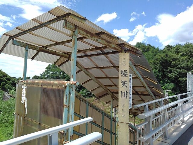 ホームの先には乙女湖公園への入口。どんな湖かと歩いていくが、繰矢川の瀬音を聞くのみ。がらんどうの駐車場には犬を連れた中年夫婦の姿があるのみ。