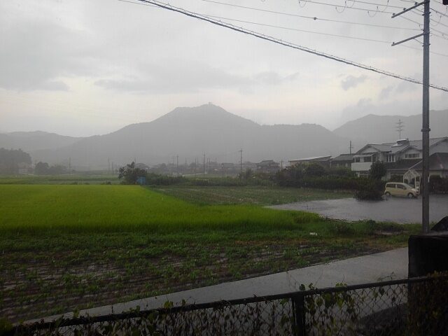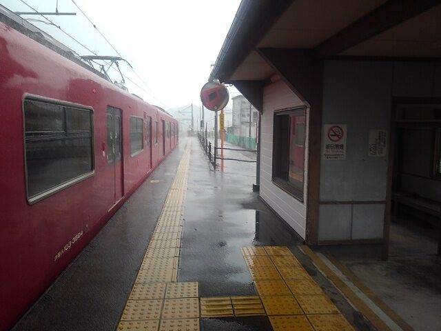 空が割れるのは早かった。仁豊野駅ではすでにぽつぽつ。