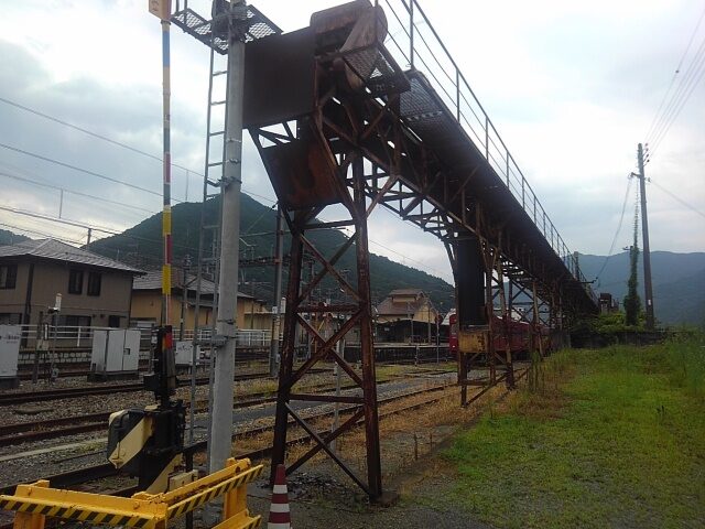 駅舎は反対ホームにある。ここ3駅で見てきたような好きなタイプだが、行くのはやめろと激しい雨。天の声には従う。外には出て姿のいい山を写す。