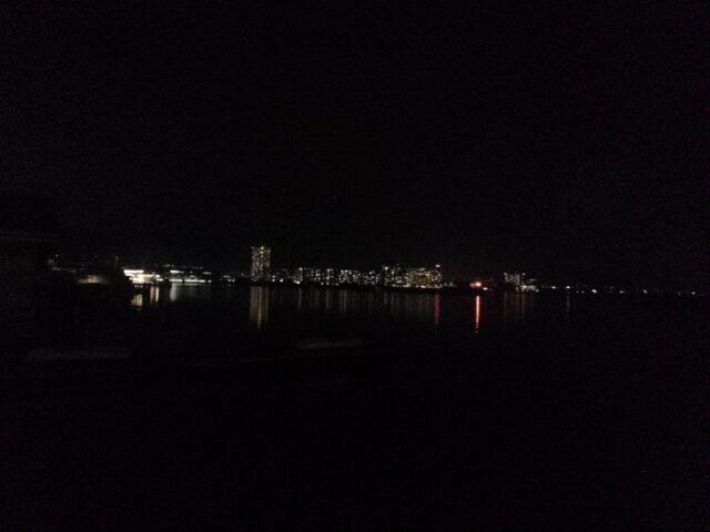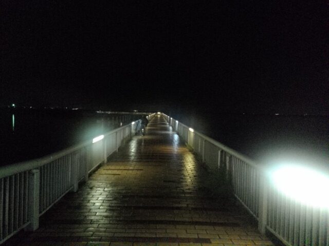 桟橋の途中に人影があり、カップルかと思いきや、三脚を持ったカメラマン。彼にならうように四方にスマホを向けた。