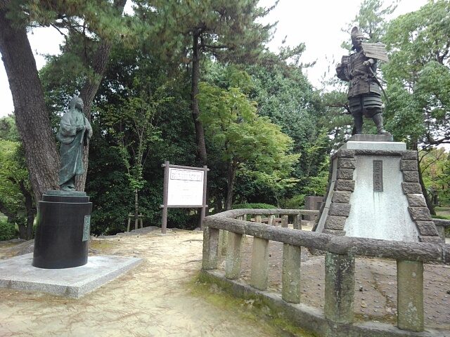 清洲公園には織田信長、濃姫像が建っている。桶狭間に向かう若き日の信長の姿で、首に数珠をかけている様が味方を勇気づけたとのこと。後に神仏を敵に回した男の意外な一面と言える。