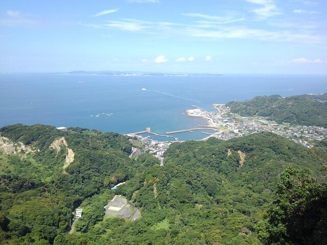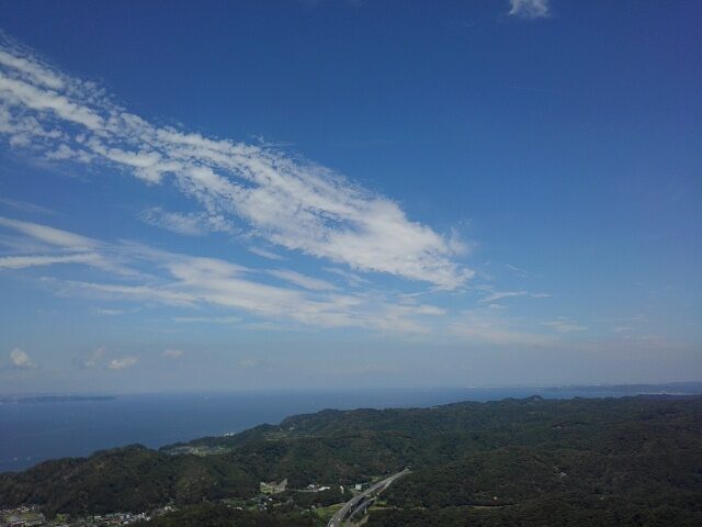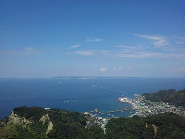 上総安房国境に広がる低い山並と浦賀水道の青は、夏の名残と表現するには鮮やかすぎるほどの夏色。