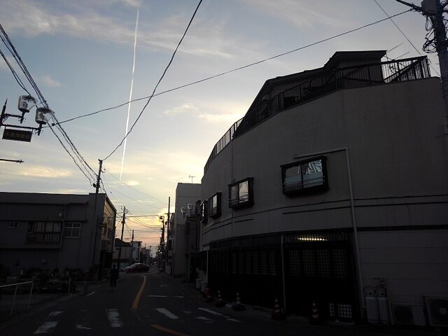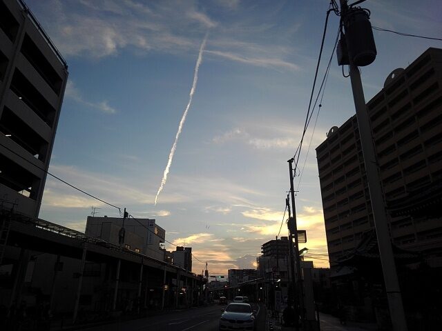 帰りに降りた木更津では登り龍のような飛行機雲。